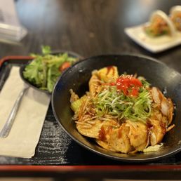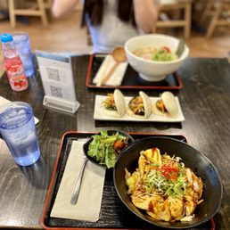 This place really hit the spot. I ordered the Poke Bowl, and it DID NOT DISAPPOINT! The veggie gyoza was delicious. ALL the meals at our table were fantastic. Service was great, table was a little too close to the kitchen for the server to be moving around, but that was the only negative we had. Come check this place out! Worth the stop. Worth the money!
